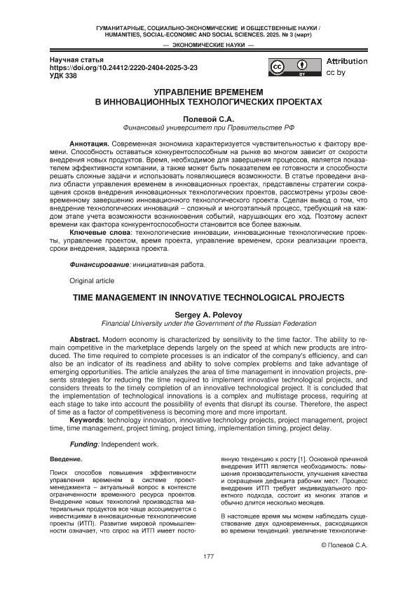 Полевой, С.А. Управление временем в инновационных технологических проектах // Гуманитарные, социально-экономические и общественные науки. – 2025. – № 3. — С.177-181. — Только в электронном виде. — <URL:http://elib.fa.ru/art2025/bv680.pdf>.
