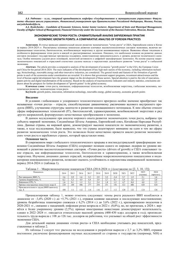 Рябченко, А.А. Экономические точки роста: сравнительный анализ зарубежных практик // Вестник Академии знаний. – 2025. – № 3. — С. 382-387. — Только в электронном виде. — <URL:http://elib.fa.ru/art2025/bv1555.pdf>.
